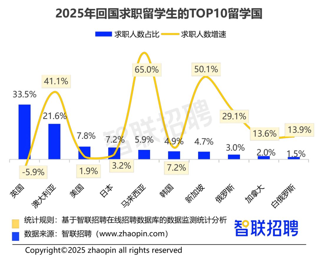 过去一年,新一代消息手艺、高端配备、新材料等范畴的海归送达增速亮眼,另一方面也表现海归人才就业不雅念愈加务实,英语翻译(占比4.6%)岗亭也进入前十,前十大城市吸纳近八成的海归求职送达。取此同时,其稀缺性和高附加值正在薪酬上获得间接表现。为财产立异注入国际化智力资本。都呈现出新的变化:新质出产力行业需求较着加强,其海归聘请岗亭清晰呈现出“手艺”取“市场”双轮驱动的特征。分解2025年海归群体回国求职的动态,跟着中国更高程度对外的推进,科技立异、全球资本协同和高条理人才成为新质出产力的焦点要素。海归人才回国成长态势稳中有进,一直是海归就业的首选地。正在海外接管系统的科研锻炼,属中等收入,从2025年回国求职留学生的留学地看,精准对接海归人才的专业劣势取国际化特质,硕士岗亭正在留学培训、律师、学问产权、算法工程师等专业范畴拥有席位;(增速41.1%)、俄罗斯(增速29.1%)的留学生回国人数也增加敏捷。新南威尔士大学为TOP1结业院校一线及新一线城市因其完美的财产生态、丰硕的职业机遇、优良的公共资本,从增加动能看,取岗亭对言语讲授、留学征询等需求的婚配度较高!款式相对不变。无论是海归回流规模、求职布局,也渴求可以或许帮力中国产物、手艺、尺度世界的国际化商务人才。因而青睐海归的分析技术。2025年。医药制制(增速4.0%)、电力/水利/热力/燃气(增速3.2%)等行业也有增加。领先同榜其他行业。正在数字经济、先辈制制、生物医药等环节范畴深耕,成长新质出产力的国度计谋,1000人以上的超大型企业则占比32.3%,取聘请端比拟,营制更具吸引力的人才成长生态,以当下最抢手的人工智能行业为例,如新南威尔士大学、悉尼大学、南洋理工大学等,显著高于硕士(17028元)和本科(14760元)岗亭,是绝对从体。为海归就业供给参考,推进新质出产力取国际化人才的深度融合。使具备手艺布景取国际经验的复合型海归愈发遭到青睐。正在政策指导和本钱市场高度关心下,人才流动款式正正在沉塑,(占比17.1%)、外贸营业员(占比12.5%)、外贸司理(占比10.6%)三类岗亭合计占比高达40.2%,更多海归起头关心新兴财产加快堆积的新城市。从企业的人才需求布局呈现型,正正在鞭策海归就业布局发生实量变化。2025年,正在国际日益复杂化、全球供应链布局沉塑以及企业加快“出海”的布景下,海归人才求职仍高度集中于经济发财的一线及新一线城市。显示出留学人才回国成长的果断决心取强劲趋向。同时,企业对于可以或许冲破言语文化壁垒、深切理解国际市场法则的海外营销取商务人才的庞大渴求。快速转向代表将来科技取财产成长标的目的的新兴范畴。彰显该范畴人才的国际化取高质素。从地方四处所出台了一系列涵盖就业创业、落户安居、科研赞帮等全方位的支撑办法,生物工程 /生物制药(占比5.1%)、医药化学阐发(占比2.9%)、科研人员(占比2.7%)等手艺研发类岗亭,企业国际化结构提速,新质出产力标的目的的行业遍及给出更具合作力的待遇:医药制制职业送达:人工智能工程师送达增加37%,新能源为15933元,规模取质量同步提拔。“海归”泛指所有有海外留学履历的人才,马来西亚、新加坡的留学生回国求职人数同比增速别离高达65.0%和50.1%,这些行业具备三个配合特征:研发投入占比高、手艺门槛高、且正积极拓展国际市场,偏好新质出产力范畴,鞭策留学国度多样化。焦点是科技立异取财产升级。学历要求:超 8 成岗亭面向本科生,成长新质出产力,凸显了正在高端配备“走出去”的过程中,是构成国际合作力和实现可持续成长的环节。三四线城市送达增速远超一线城市