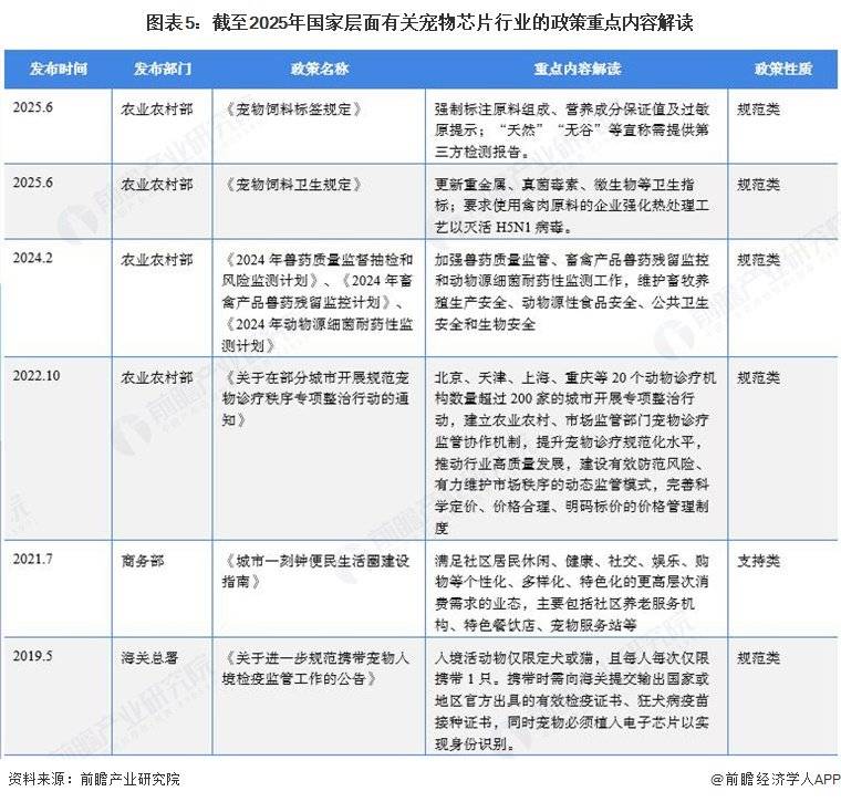 以下数据及阐发来自于前瞻财产研究院宠物芯片研究小组发布的《中国宠物行业(宠物经济)市场前景预测取投资计谋规划阐发演讲》。最终,我国宠物芯片行业相关政策汇总如下: